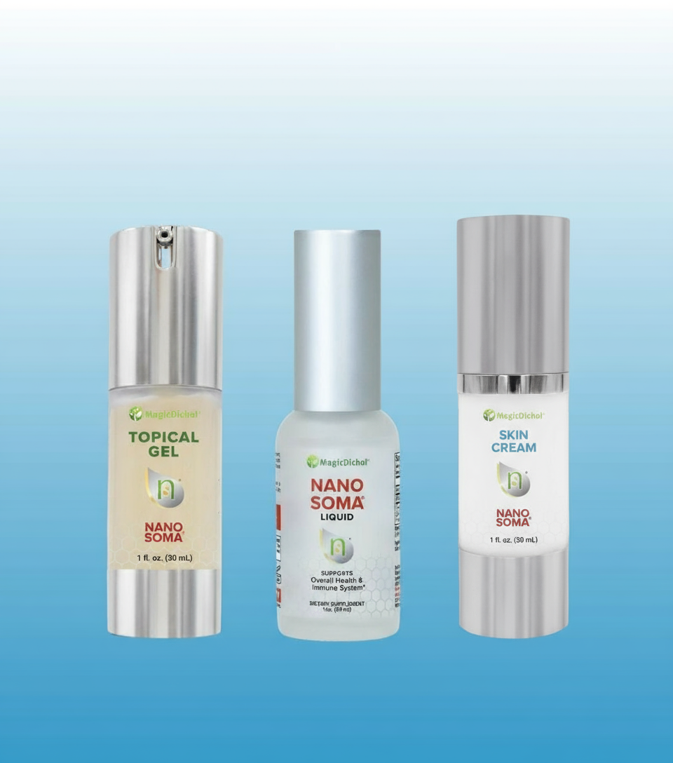 Welcome to the MagicDichol® family, with products like NANO SOMA® Liquid, the NANO SOMA® Topical Gel, and the NANO SOMA® Skin Cream . Together, we’re changing how we think about health.