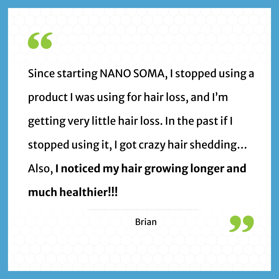 With NANO SOMA®, your body receives the support it needs to bring out your healthiest hair,* with customers noticing both less shedding, and longer, much healthier hair growth.